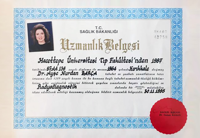 1995 yılında S.B. Ankara Numune Eğitim ve Araştırma Hastanesinde radyoloji ihtisas eğitimimi tamamlayarak ayni hastaneye uzman olarak atandım .