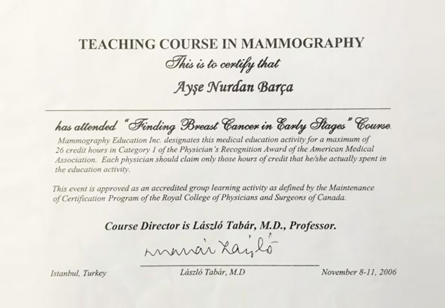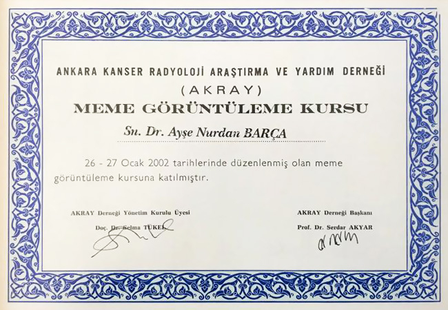 - Ankara Kanser-Ankara Radyoloji Araştırma ve Yardım Derneği Meme görüntüleme Kursu Ocak 2002 Ankara