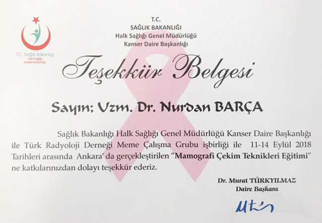 - S.B.Halk Sağlığı Genel Müdürlüğü Kanser Daire Başkanlığı: Mamografi Çekim Teknikleri Eğitimi Eylül 2018