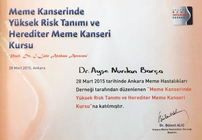 - Ankara Meme Hastalıkları Derneği Meme Kanserinde yüksek risk tanımı ve herediter meme kanseri kursu Mart 2015